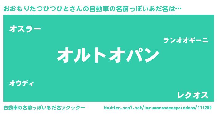 | 欧米人風あだ名 | 『ウサインおおもりたつひつひと』 |