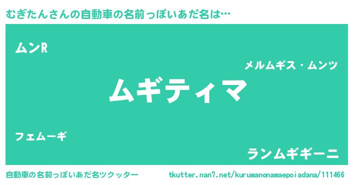 | ポケモン風あだ名 | 『ムギチュウ』『ムックウザ』 |