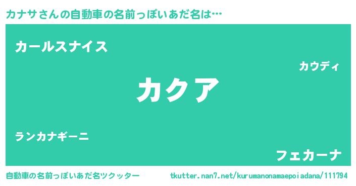 | 女子向けラノベタイトル風あだ名 | 『カナサの雑貨屋さん』 |