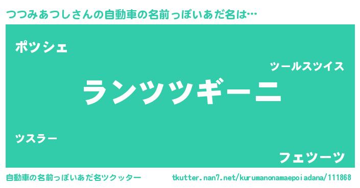 | 意味不明あだ名 | 『住所不定無職つつみあつし(93歳)』 |