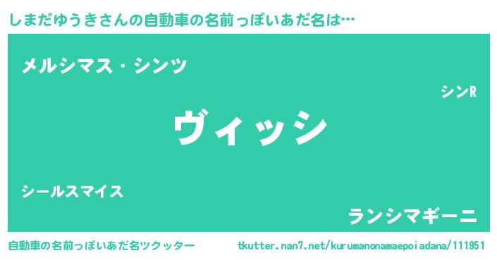 | ヘコむあだ名 | 『しまだゆうき(苦笑)』『なまこ酢』 |