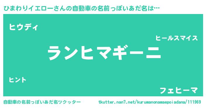 | 男性向けラノベタイトル風あだ名 | 『ひまわりイエローに滅ぼされるだけの簡単なお仕事です』 |