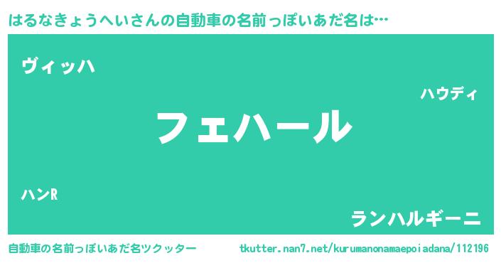 | 意味不明あだ名 | 『永久保存はるなきょうへい』 |