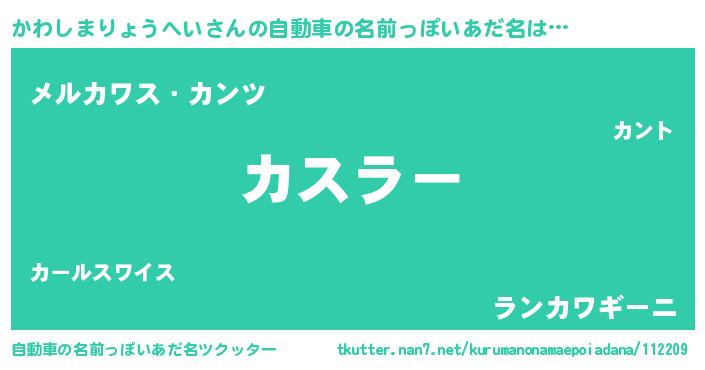 かわしまりょうへいさんの自動車の名前っぽいあだ名をツクッター!