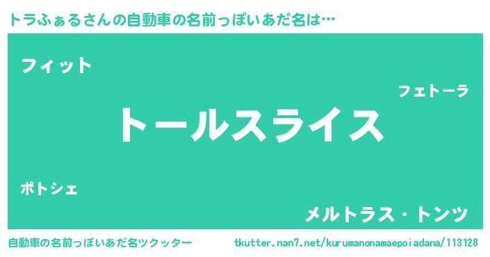| 欧米人風あだ名 | 『トリンドルトラふぁる』 |