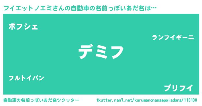 | 男性向けラノベタイトル風あだ名 | 『フイエットノエミという概念が存在しない退屈な世界 』 |