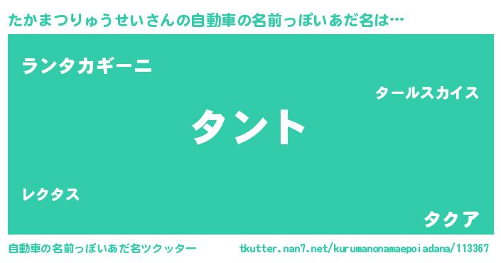 | 男性向けラノベタイトル風あだ名 | 『たかまつりゅうせいの嫁は女の子じゃないと思った?』 |