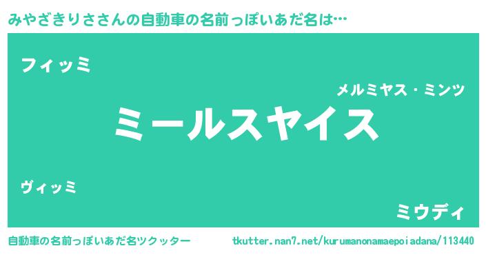| 男性向けラノベタイトル風あだ名 | 『ミヤザキリサスレイヤー』 |