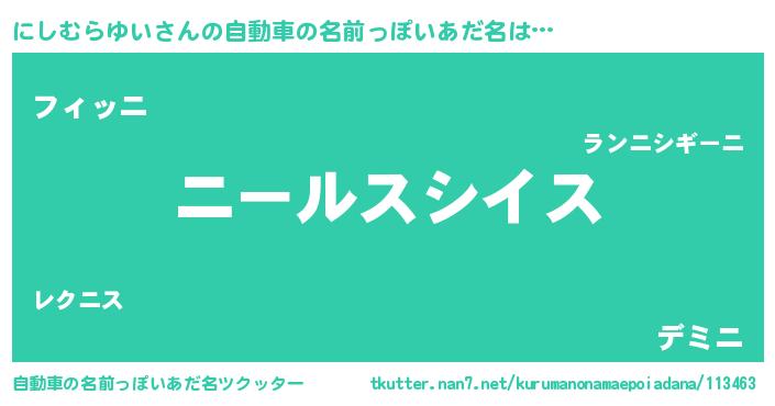 | ヘコむあだ名 | 『にしむらゆい(笑)』『にしっ子』 |