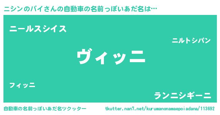 ニシンのパイさんの自動車の名前っぽいあだ名をツクッター!