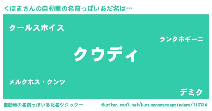 くほまさんの自動車の名前っぽいあだ名は… 『クウディ』『クールスホイス』『デミク』 ツクッター #自動車の名前っぽいあだ名ツクッター http://tkutter.nan7.net/kurumanonamaepoiadana/113734/