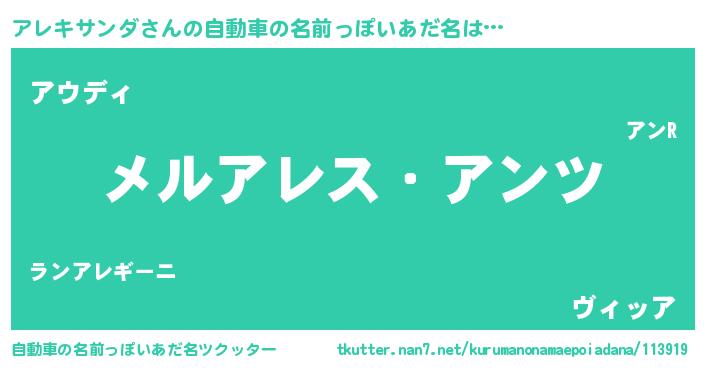 | 意味不明あだ名 | 『自称アレキサンダ』 |