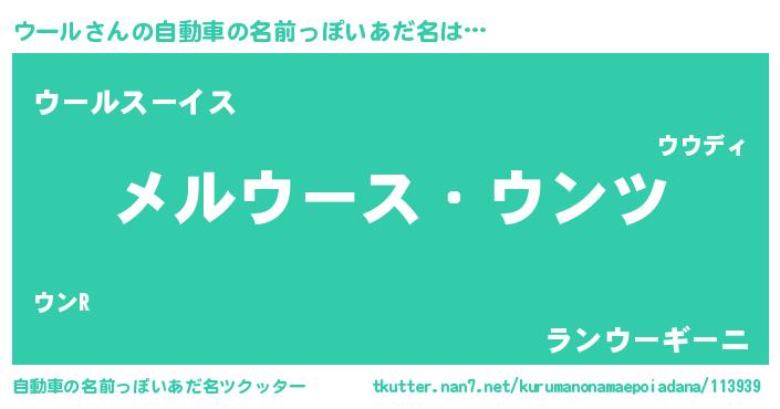 | ヘコむあだ名 | 『ウール(笑)』『ウーもー』『つくし』 |