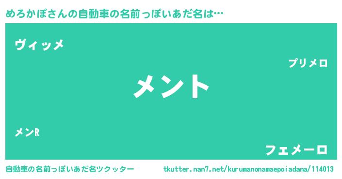 | 意味不明あだ名 | 『とにかく怪しいめろかぽ』 |