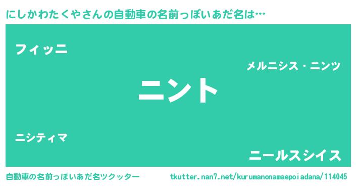 | ポケモン風あだ名 | 『ヒニシカワタクヤ』『ニックウザ』 |