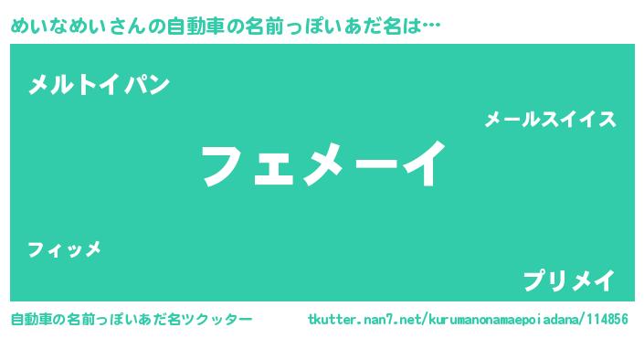 | 欧米人風あだ名 | 『めいなめい・ステッグマイヤー』 |