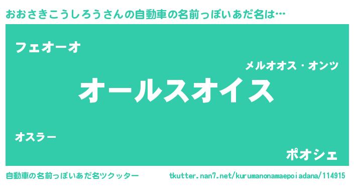 | 男性向けラノベタイトル風あだ名 | 『おおさきこうしろう~年齢イコール彼女いない歴の魔法使い~』 |