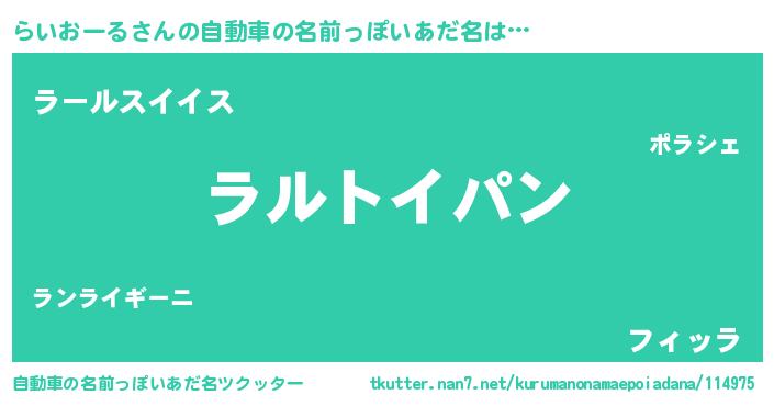 | 意味不明あだ名 | 『とにかく怪しいらいおーる』 |