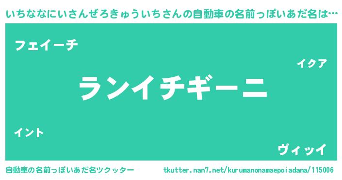 | 欧米人風あだ名 | 『アンジェラ・いちななにいさんぜろきゅういち』 |