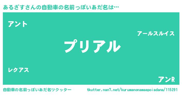 あるざすさんの自動車の名前っぽいあだ名をツクッター!