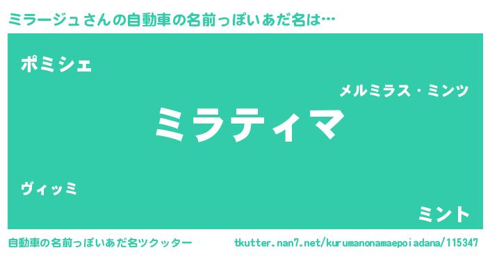 | ヘコむあだ名 | 『ミラにゅー』『ミラ太郎』 |