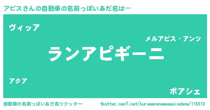| 意味不明あだ名 | 『永久保存アピス』『自称アピス』 |