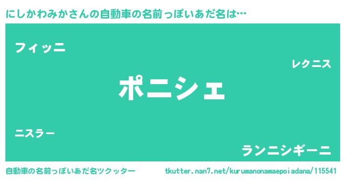 | 男性向けラノベタイトル風あだ名 | 『この素晴らしい世界ににしかわみかを!』 |