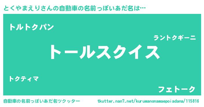 | 胡散臭い通販商品みたいなあだ名 | 『信頼と実績のサプリメント…その名も「とくやまえり」』 |