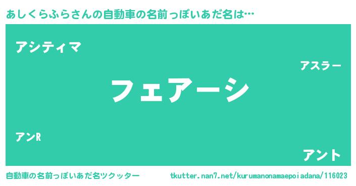 | 男性向けラノベタイトル風あだ名 | 『緋弾のアシクラフラ』 |