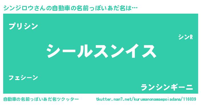 | 男性向けラノベタイトル風あだ名 | 『転生したらシンジロウだった件』 |