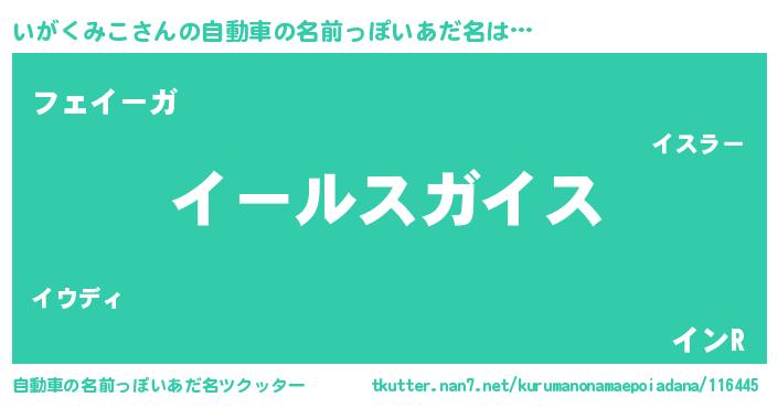 | 女子向けラノベタイトル風あだ名 | 『いがくみこの玉の輿計画!』 |