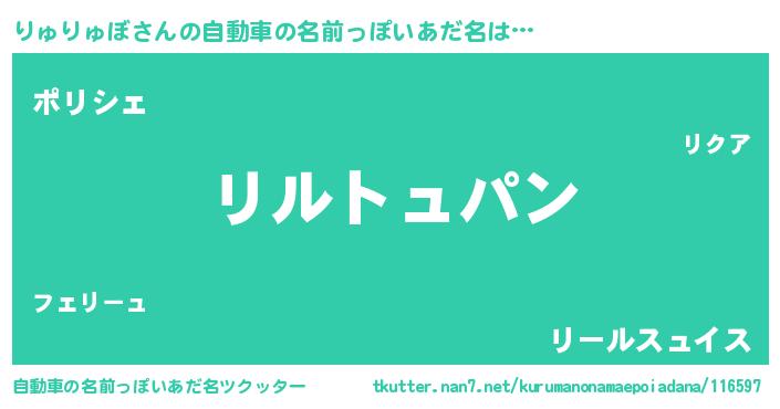 | 女子向けラノベタイトル風あだ名 | 『りゅりゅぼの卵を拾いまして』 |