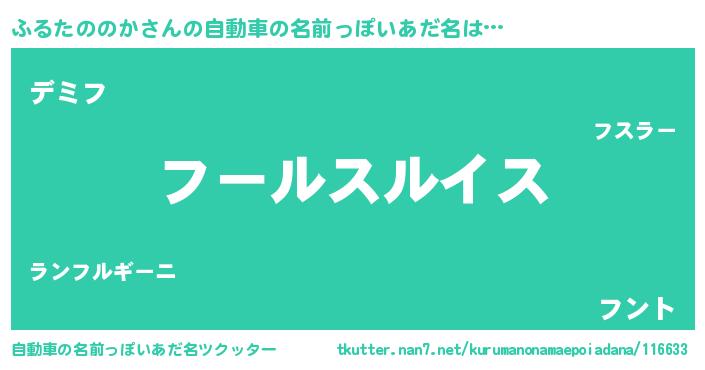 | 男性向けラノベタイトル風あだ名 | 『転生したらふるたののかだった件』 |