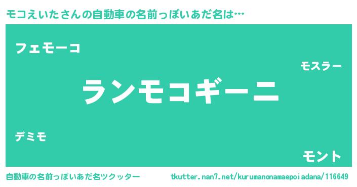 | 意味不明あだ名 | 『とにかく怪しいモコえいた』 |