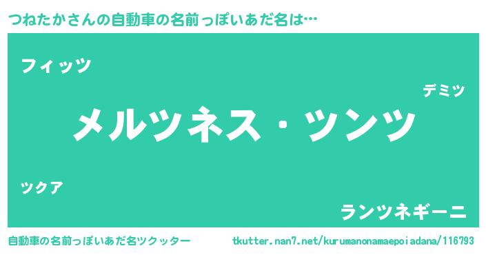 | 男性向けラノベタイトル風あだ名 | 『Re:つねたかから始める異世界生活』 |