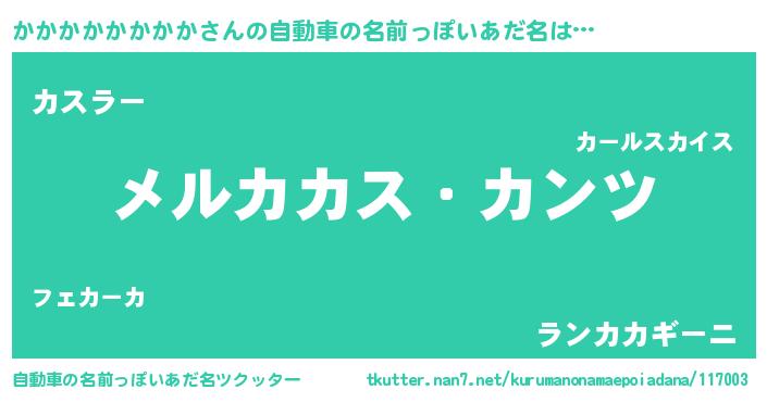 | 男性向けラノベタイトル風あだ名 | 『Re:かかかかかかかかから始める異世界生活』 |