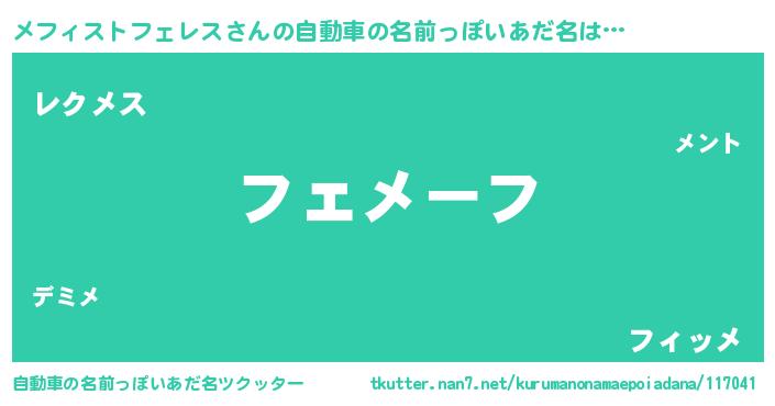 | 意味不明あだ名 | 『自称メフィストフェレス』 |