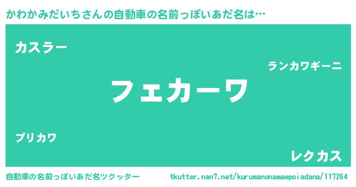 | 欧米人風あだ名 | 『かわかみだいち・ステッグマイヤー』 |