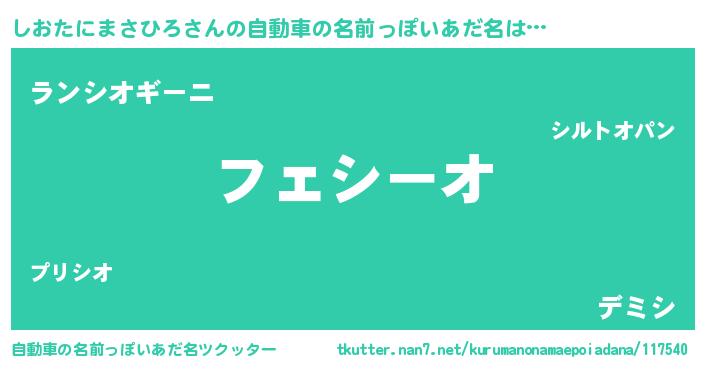| 女子向けラノベタイトル風あだ名 | 『シンデレラしおたにまさひろ家の靴箱館』 |