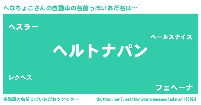 へなちょこさんの自動車の名前っぽいあだ名をツクッター!