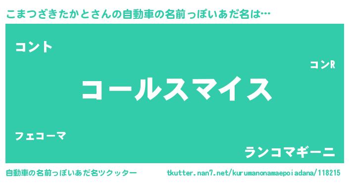 | 男性向けラノベタイトル風あだ名 | 『こまつざきたかと~年齢イコール彼女いない歴の魔法使い~』 |