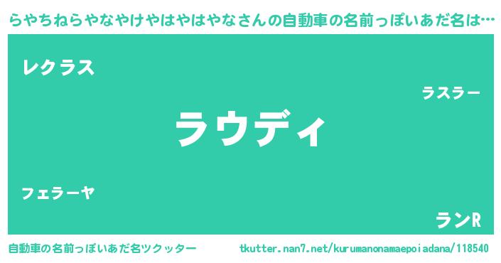 | 意味不明あだ名 | 『住所不定無職らやちねらやなやけやはやはやな(47歳)』 |