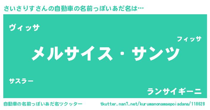 | 男性向けラノベタイトル風あだ名 | 『Re:さいさりすから始める異世界生活』 |