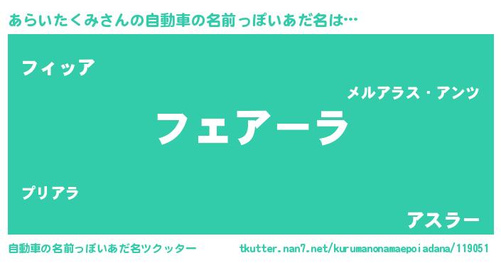| 意味不明あだ名 | 『眠気覚ましガムあらいたくみ味』 |