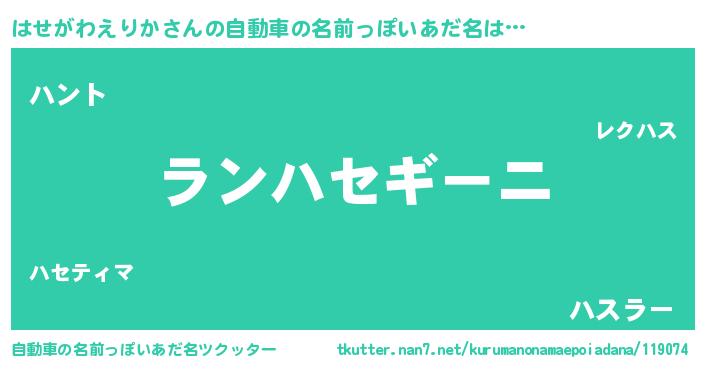 | ポケモン風あだ名 | 『ハセゴンZ』『ヒハセガワエリカ』 |