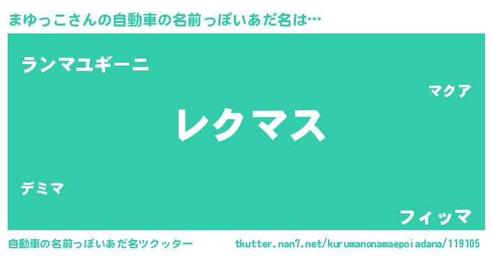 まゆっこさんの自動車の名前っぽいあだ名をツクッター!