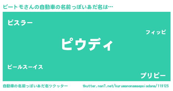 | 男性向けラノベタイトル風あだ名 | 『魔弾の王とピートモ』『ピートモの憂鬱』 |