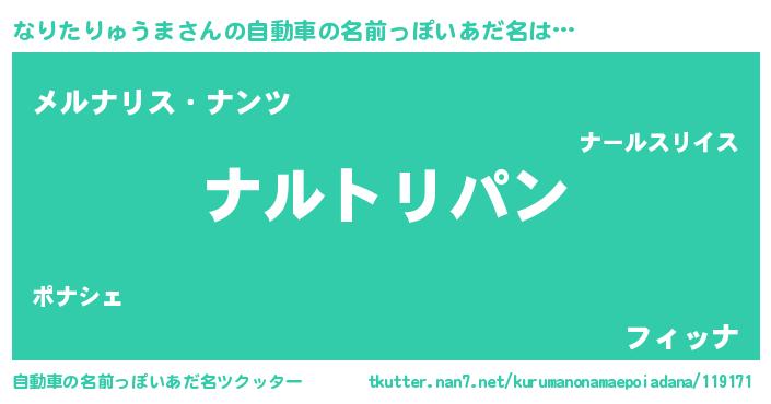 | 欧米人風あだ名 | 『ウサインなりたりゅうま』 |