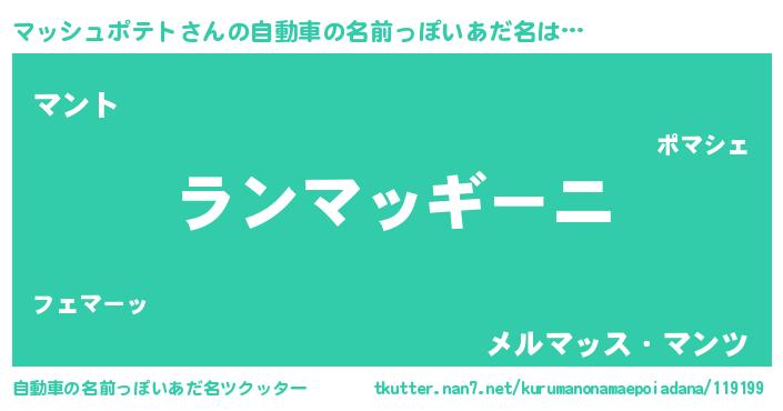 | 男性向けラノベタイトル風あだ名 | 『マッシュポテトに滅ぼされるだけの簡単なお仕事です』 |