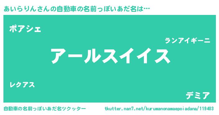 | 男性向けラノベタイトル風あだ名 | 『転生したらあいらりんだった件』 |